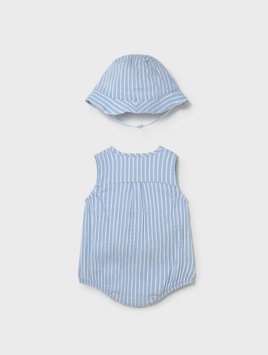 Baby Printed Romper With Hat Set - Sky