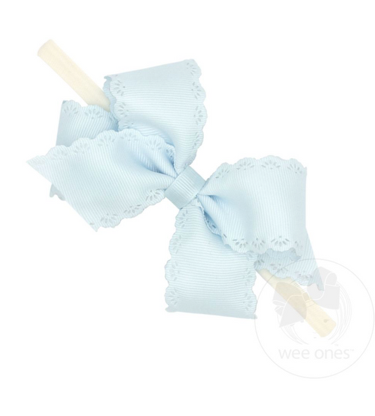 Small Embossed Eyelet Edge Hair Baby Bow - Pink or Blue