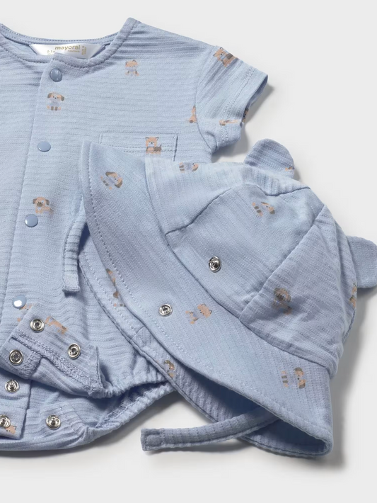 Baby Printed Romper With Hat Set - Sky