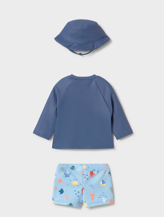Baby Boy 3-Piece Swim Set With Sun Protection
