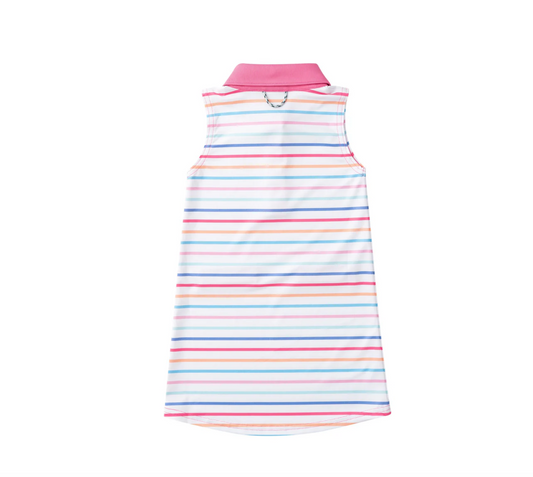 Girls Sleeveless Polo Dress Orange Sunset Stripe