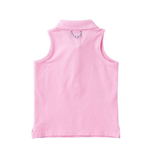 Girls Pink Sleeveless Solid Cotton Polo Shirt