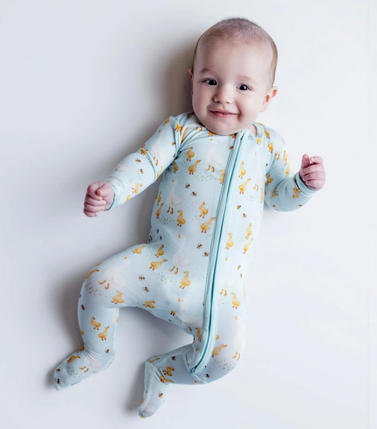 KicKee Pants Footie in Spring Sky Feeding Ducks