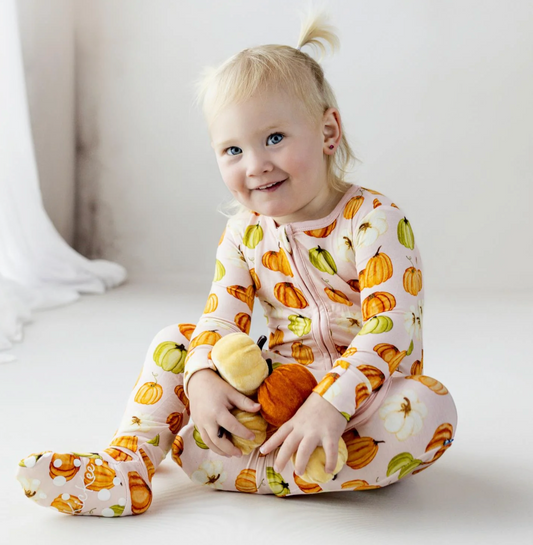 KicKee Pants Footie in Baby Rose Rumpkin Patch