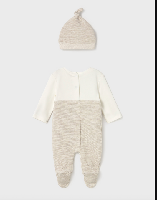 Baby Boy One Piece With Hat - Milk/ Heather