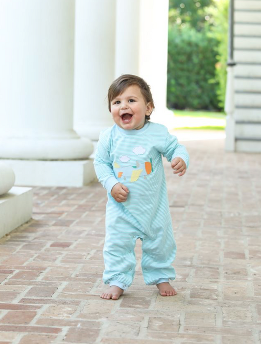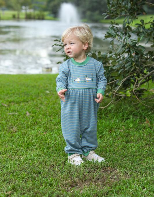 Periwinkle Blue Knit Stripe Boy's Bubble