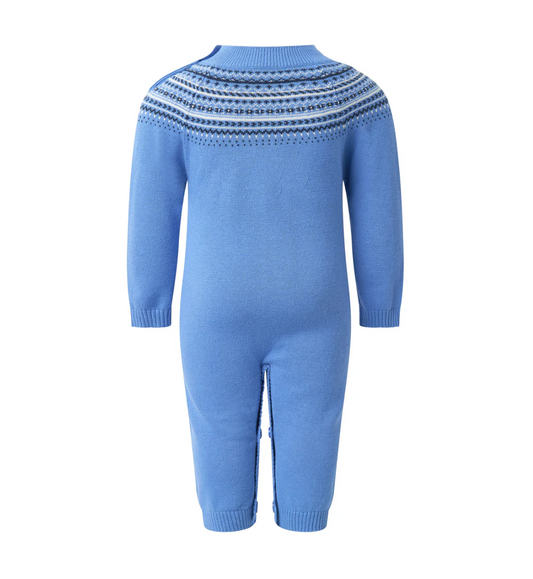 Petit Bebe Rocking Horses Light Blue Knit Boy's Bubble