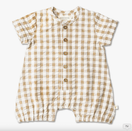Organic Cotton Short Bubble Romper - Brown Chequered