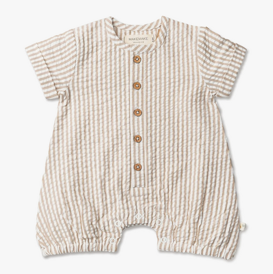Organic Cotton Short Bubble Romper - Brown Stripes