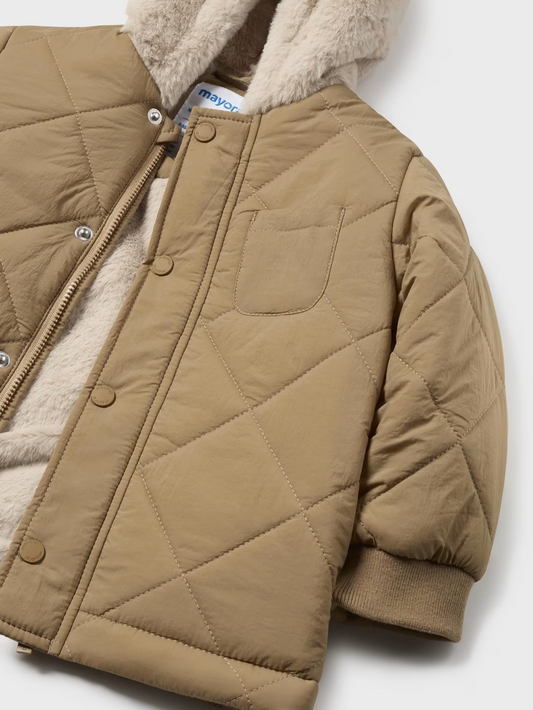 Mayoral Baby Boy Toffee Quilted Jacket with Fur Hood