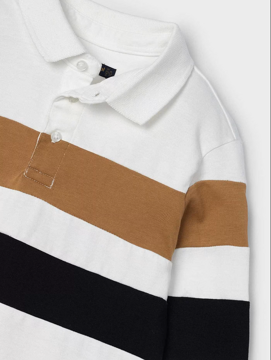 Mayoral Boys Cream Striped Long Sleeve Polo