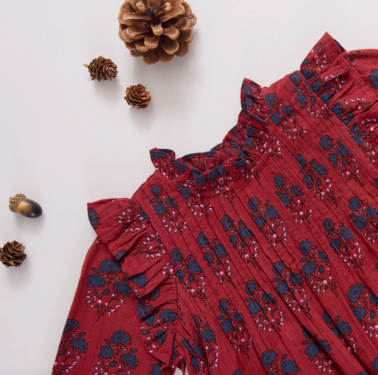 Pink Chicken Baby Girls Jaipur Dress Set - Red Autumn Strawflower