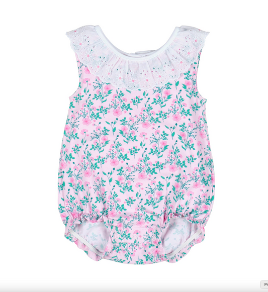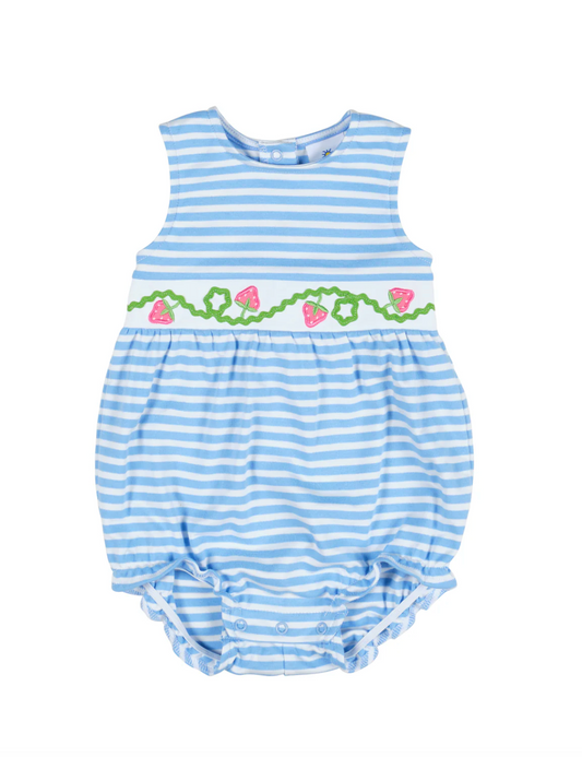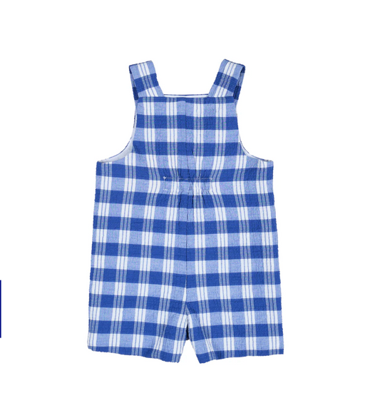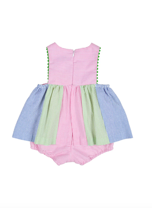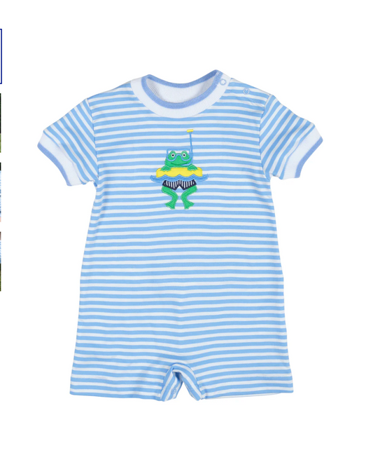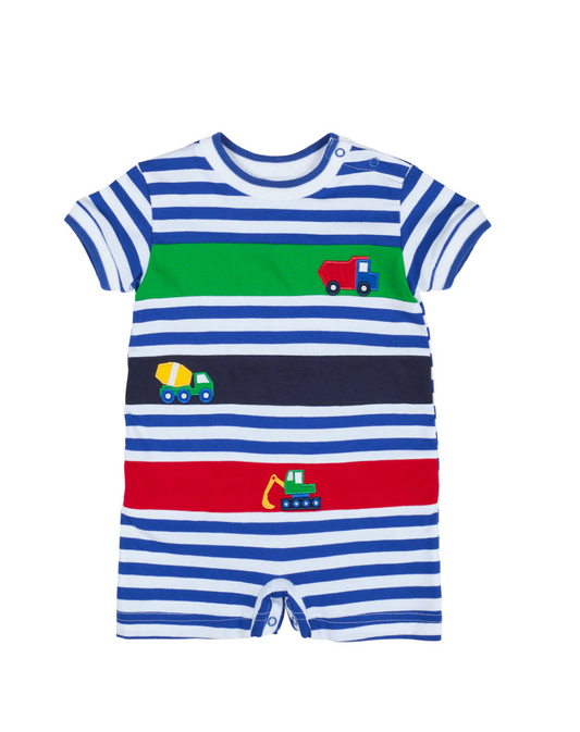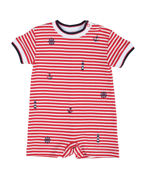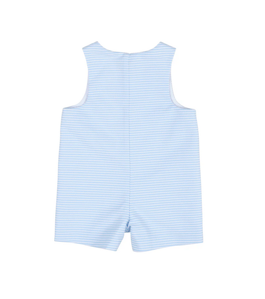 Stripe Birdeye Pique Shortall With Embroidered Trains