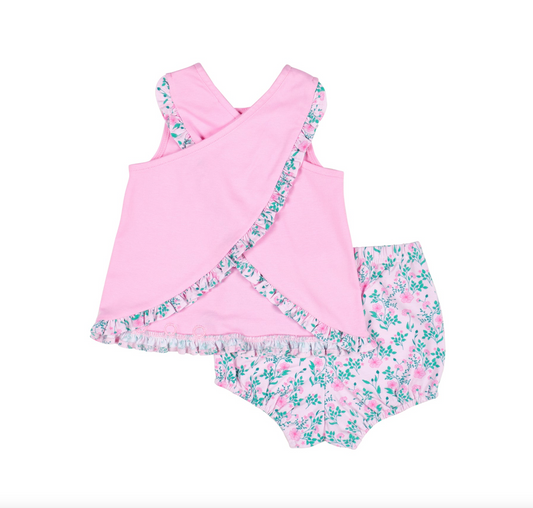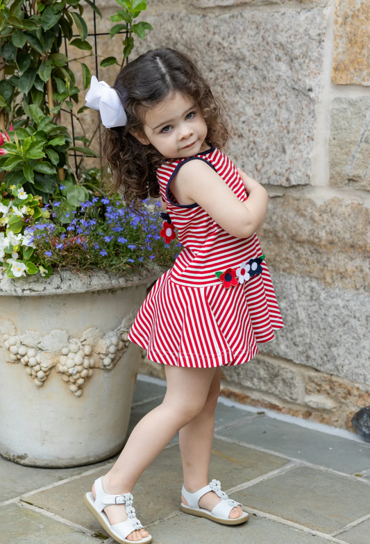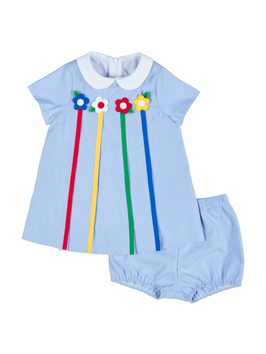 Stripe Birdseye Pique Dress with Petal Collar and Flowers
