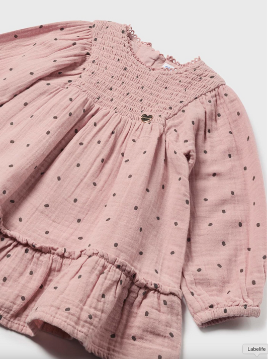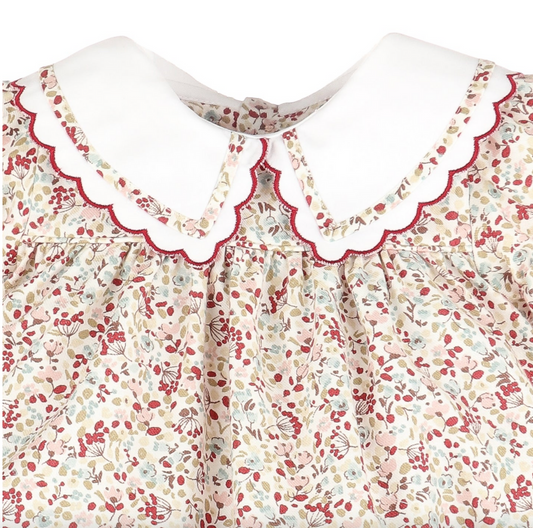 Maude's Peter Pan Collar Shirt (Long Sleeve Pima) - Sandpearl Pink Microdot
