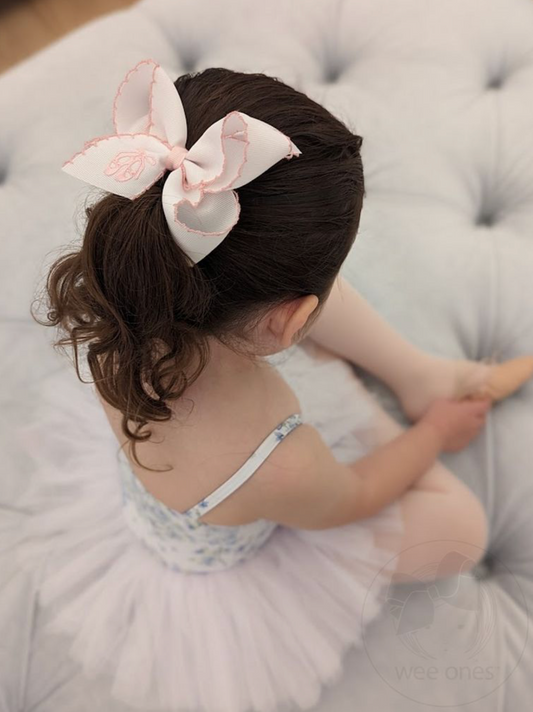 Medium Hair Bow with Pink Moonstitch Edge & Ballet Slipper Embroidery