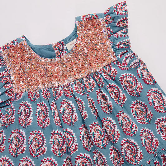 Pink Chicken Girls Fiona Ruffle Dress - Blue Paisley