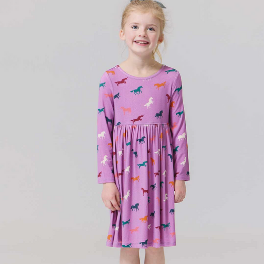 Pink Chicken Girls Bamboo Steph Dress- Lavender Multi Horses