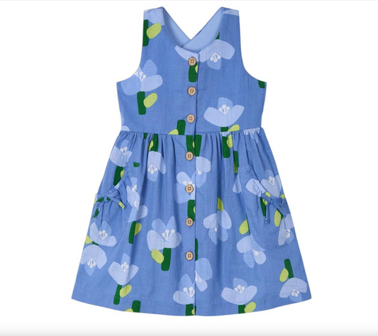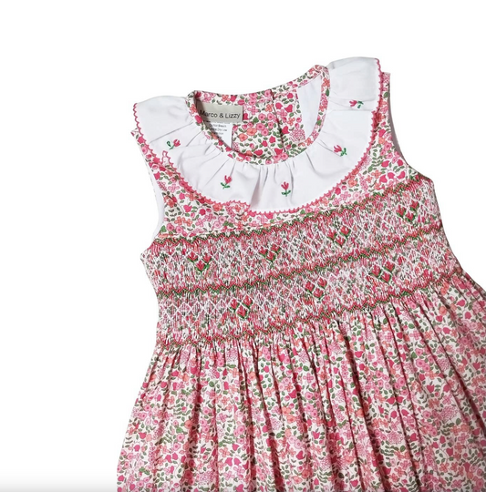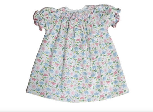 Stripe Birdseye Pique Dress with Petal Collar and Flowers
