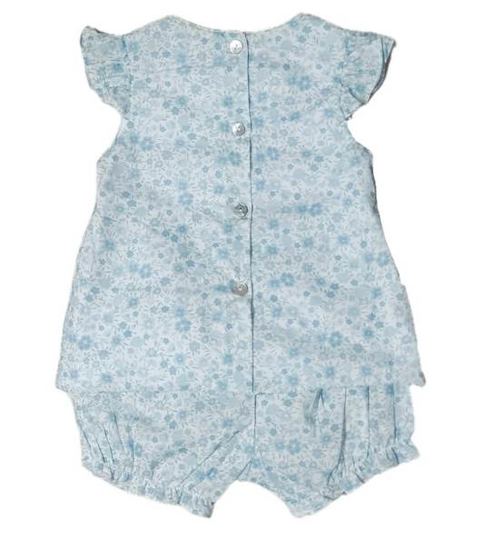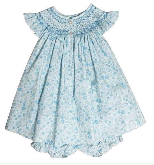 Carly & Ronnie Blue Floral Girls Smocked Bishop
