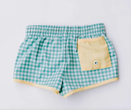 Green Gingham Swim Trunk