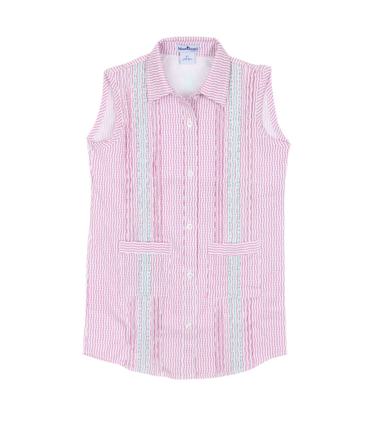 Guayabera - Pink Mint Wave Check Sleeveless Dress