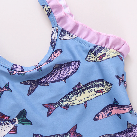 Pink Chicken Girls Claire Suit - Blue Multi Fishies