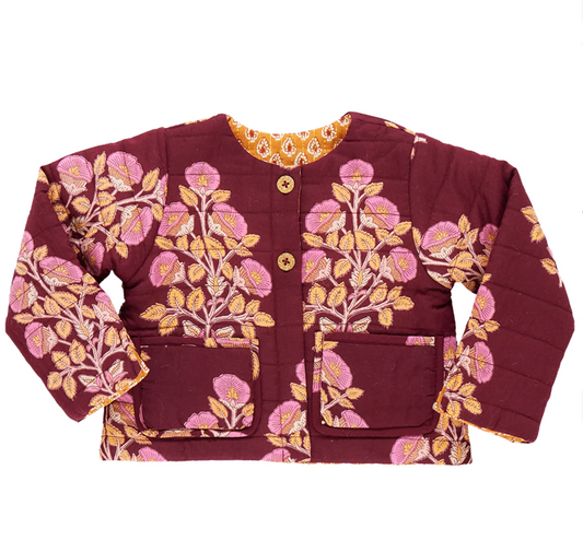 Reversible Quilted Jacket - Burgundy Bouquet Floral