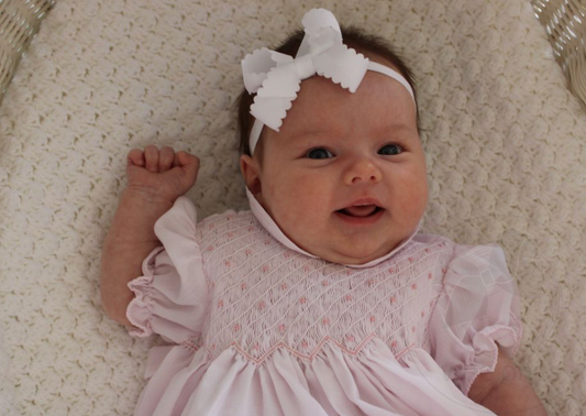 Medium Hair Bow with Pink Moonstitch Edge & Ballet Slipper Embroidery