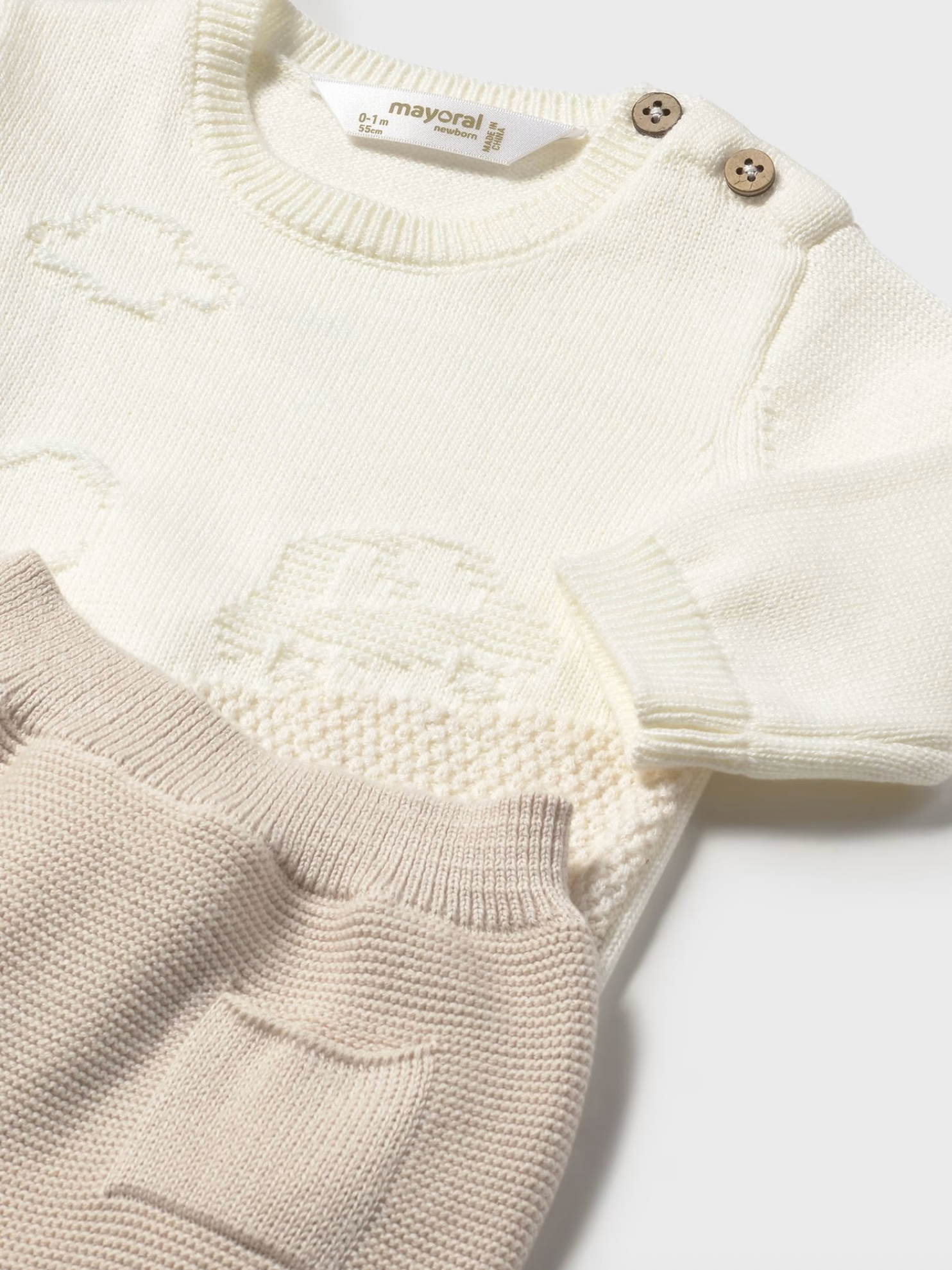 Baby Boy Knit Pants and Sweatshirt Set - Soy