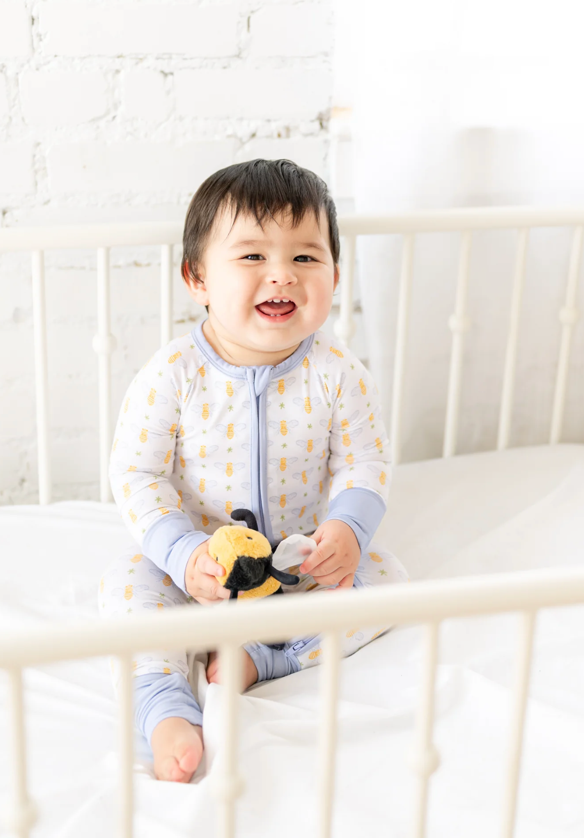 Let your little busy bee buzz into comfort with the Convertible Zippy in this playful "Buboodee Bumble" pattern. This gender-neutral design captures the cheerful energy of garden bees at work, perfect for little ones who are always on the move. The convertible style adapts to your growing child's needs, while the lighthearted bee pattern celebrates nature's hardest workers in the most adorable way.