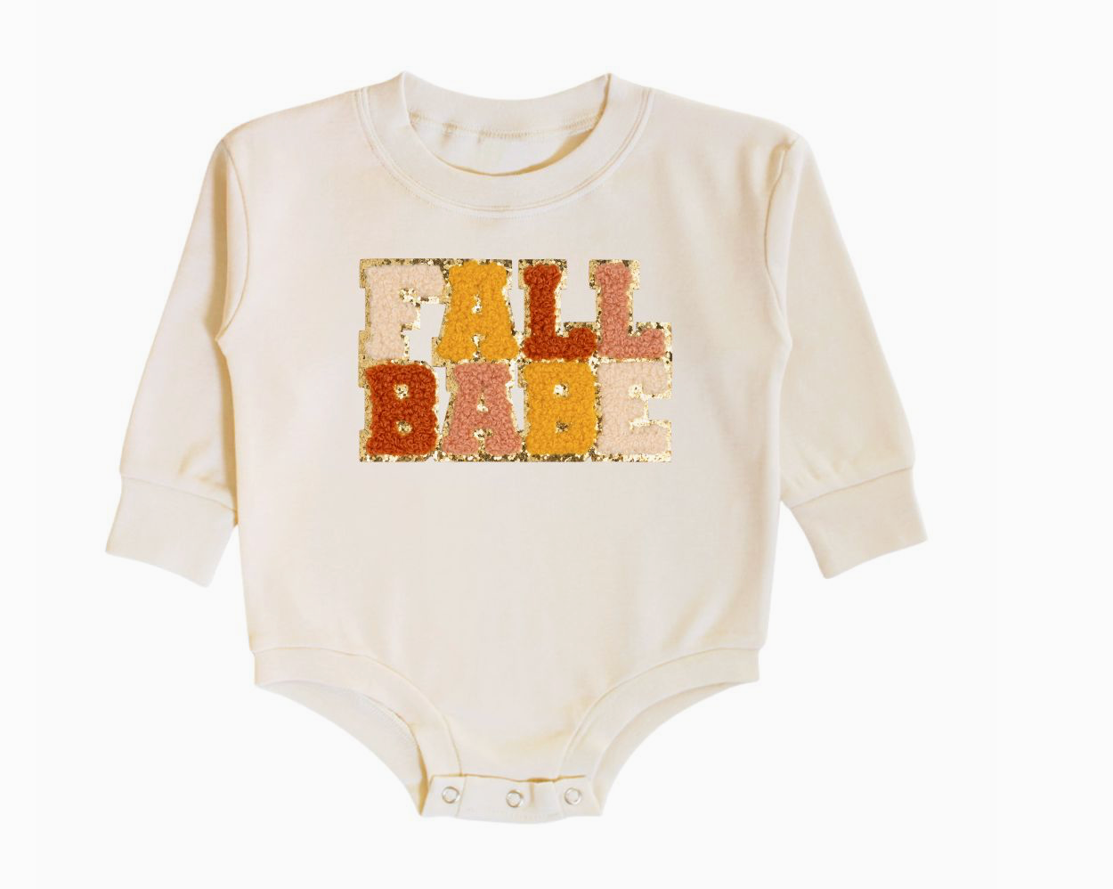The Fall Babe Patch Long Sleeve Romper is a fun and cute romper for babies celebrating Fall!