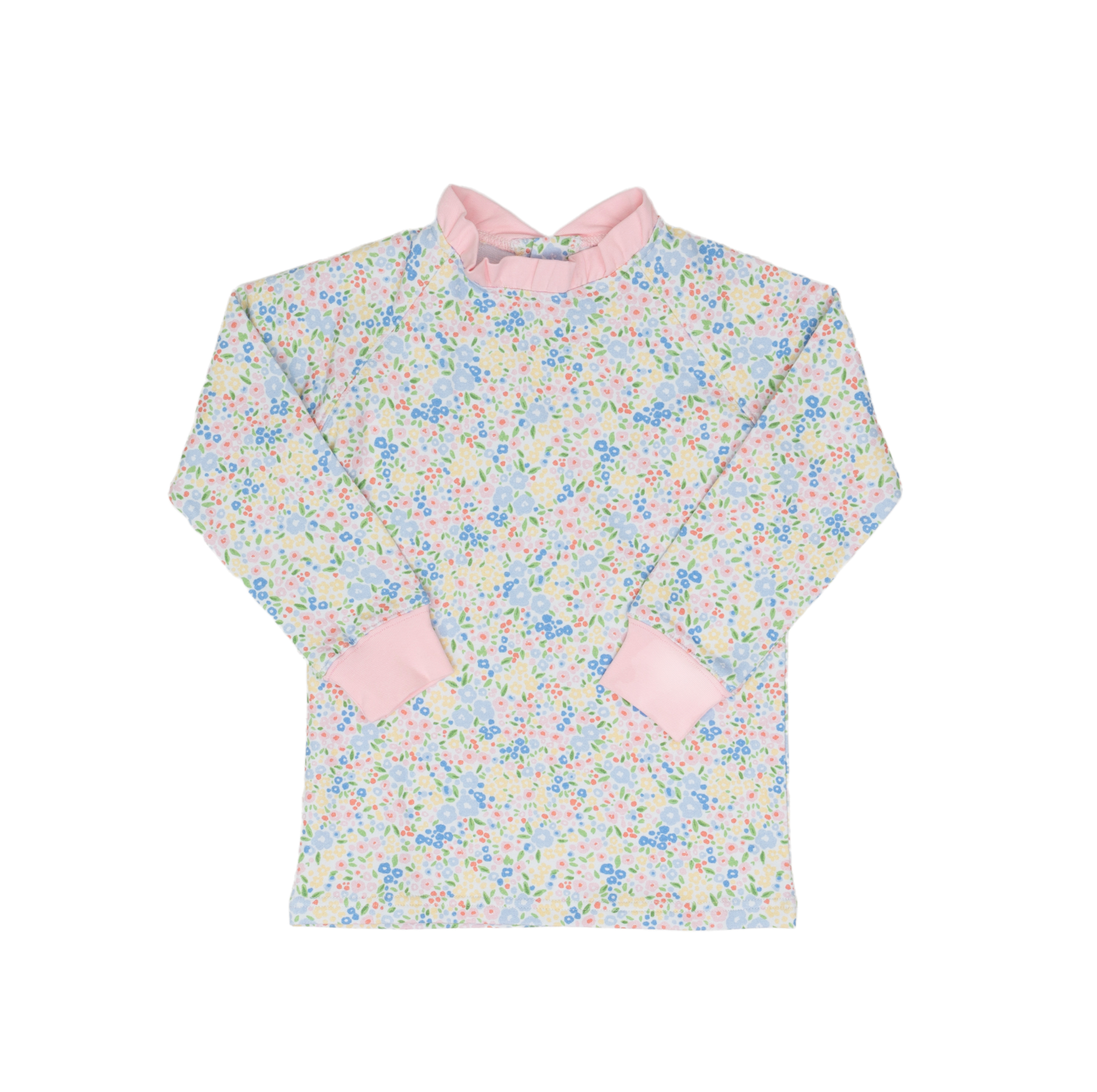 This sweatshirt is blooming with style. The girls' sweatshirt features a vibrant floral print, adding a pop of color to any outfit. The playful pink ruffle collar and cuffs add a touch of sweetness, while the long sleeves keep your little one cozy. Perfect for any fashion-forward flower child!