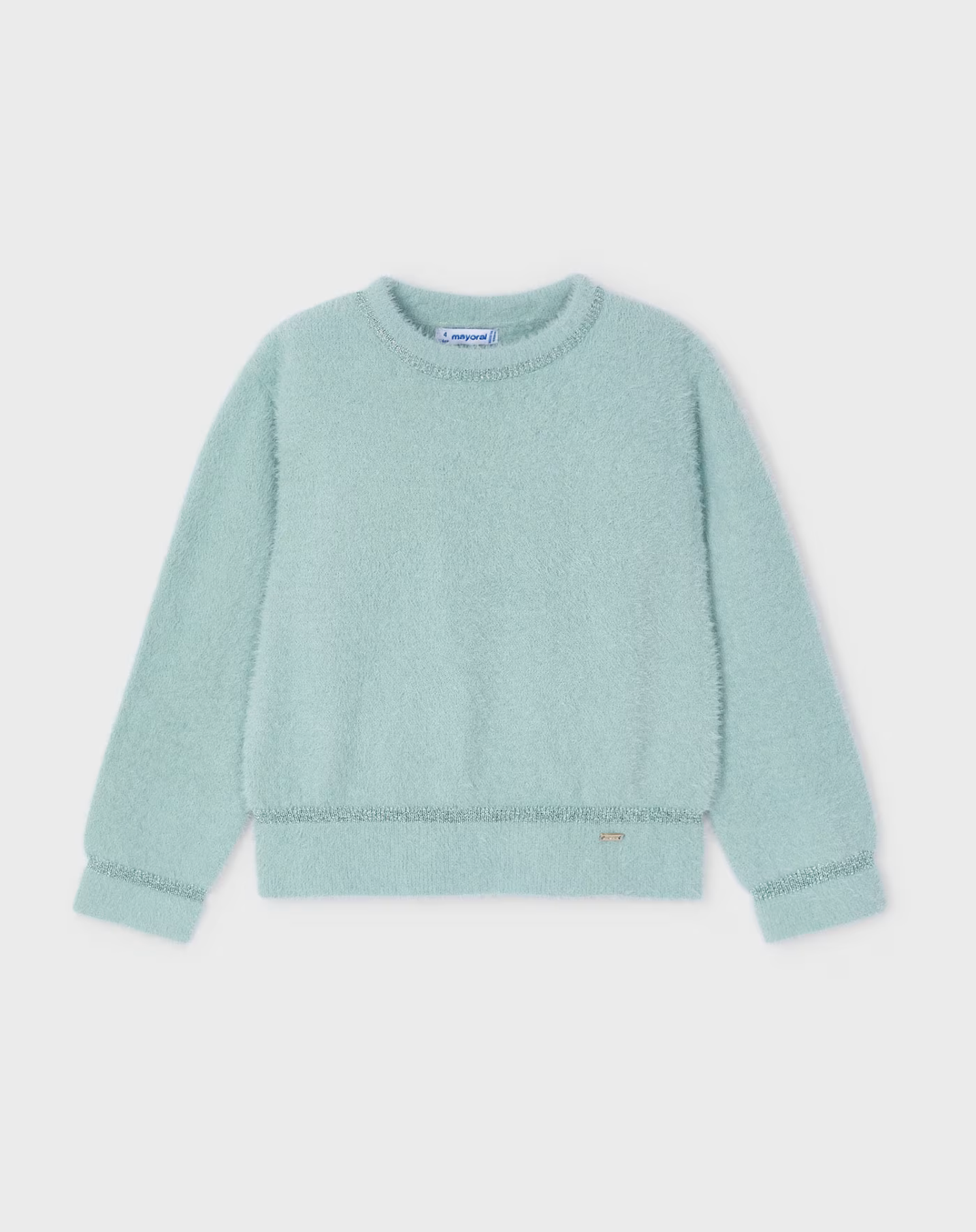 This sweater for girls features a soft and cozy outer fur-like fabric, ensuring warmth and comfort. The hem, cuffs, and neckline are crafted with elastic knit for a snug fit, making it an ideal choice for chilly days.