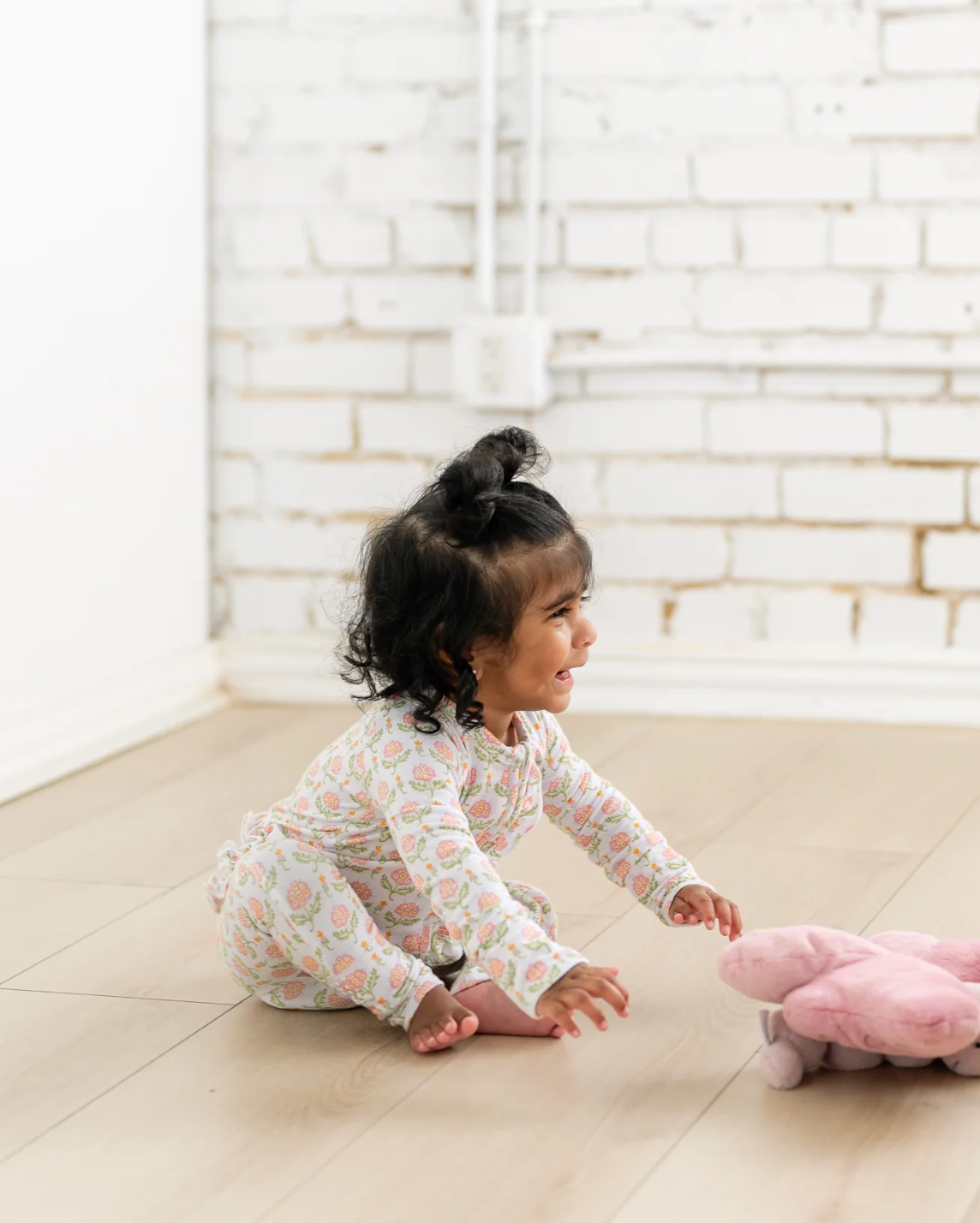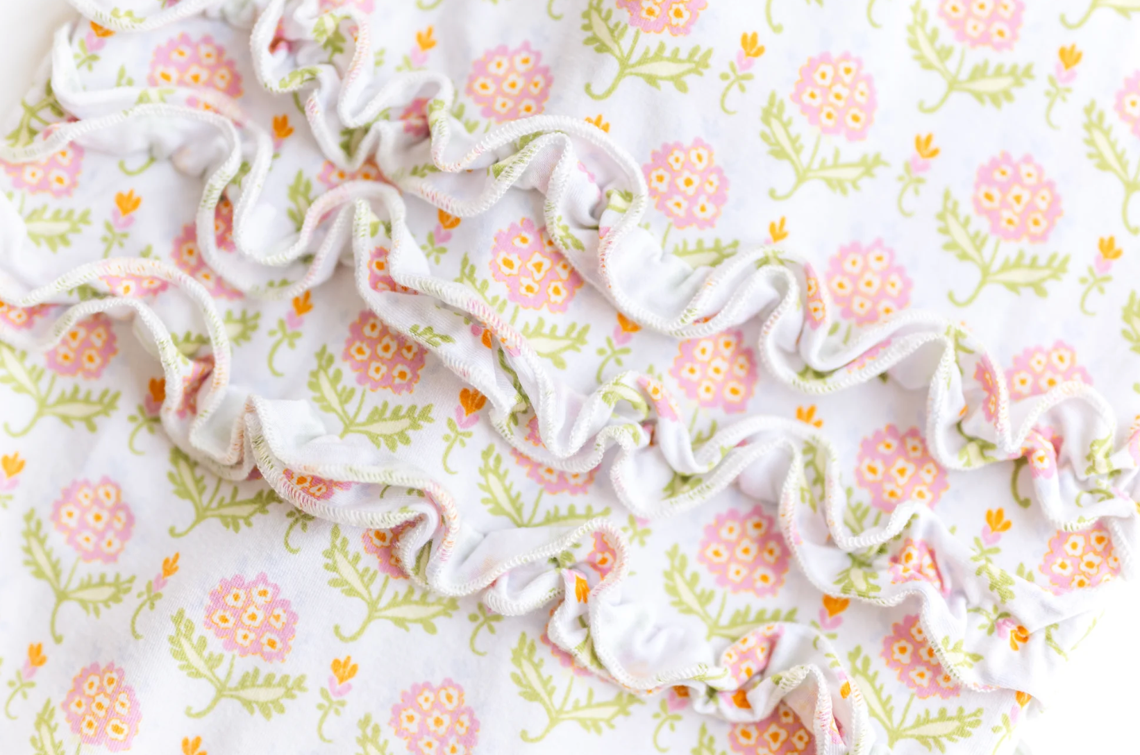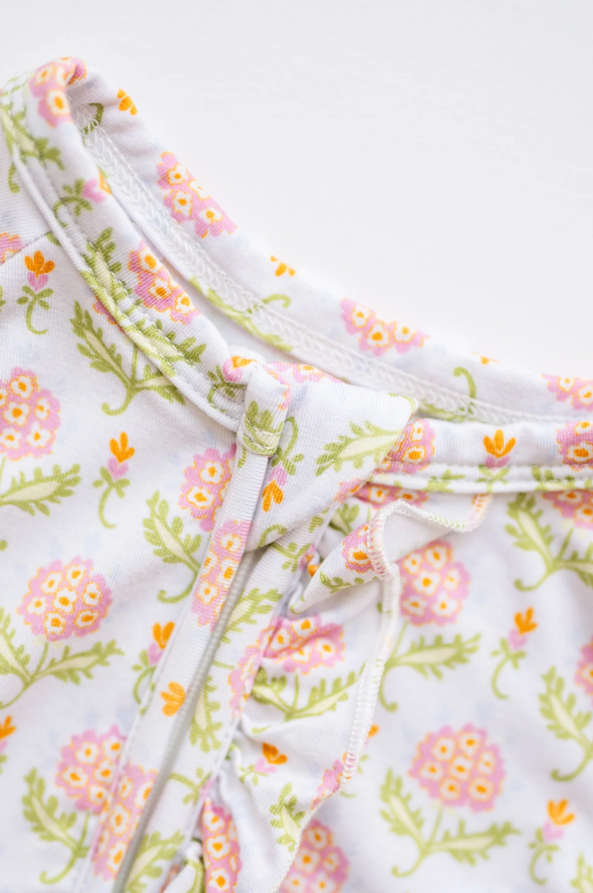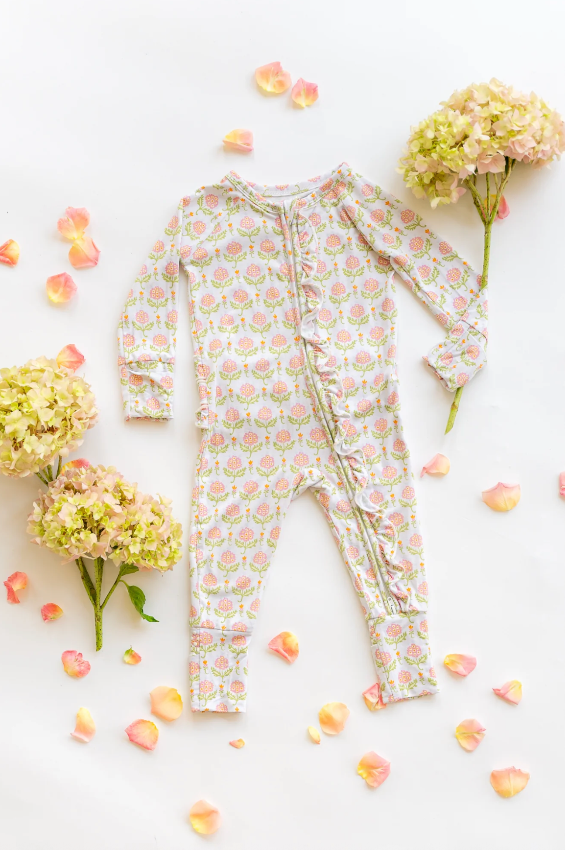 Keep your little girl cute and comfortable in the Convertible Ruffle Zippy featuring the delightfully cheerful "Happy Hydrangea" pattern. The sweet ruffle details perfectly complement the billowing hydrangea blooms, creating a look that's as joyful as a garden in full bloom. This convertible design grows with your little one, while the vibrant floral pattern brings the cheerful energy to every wear.