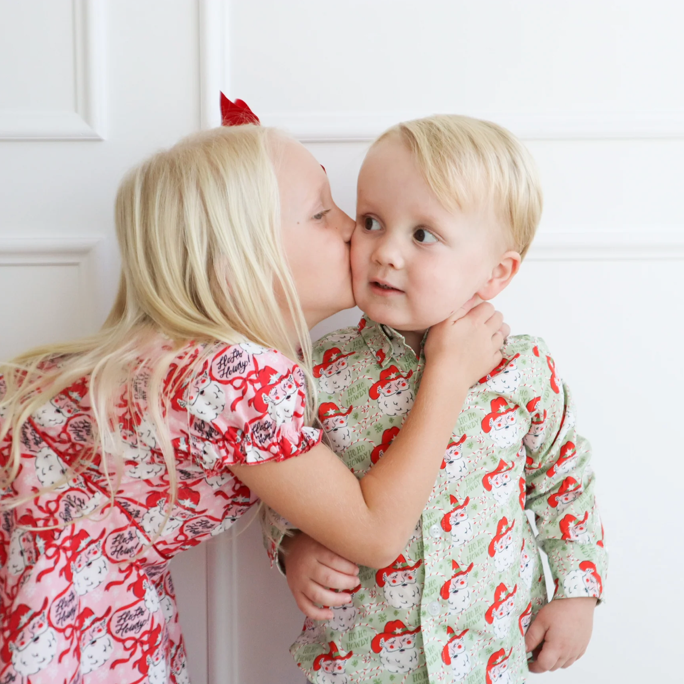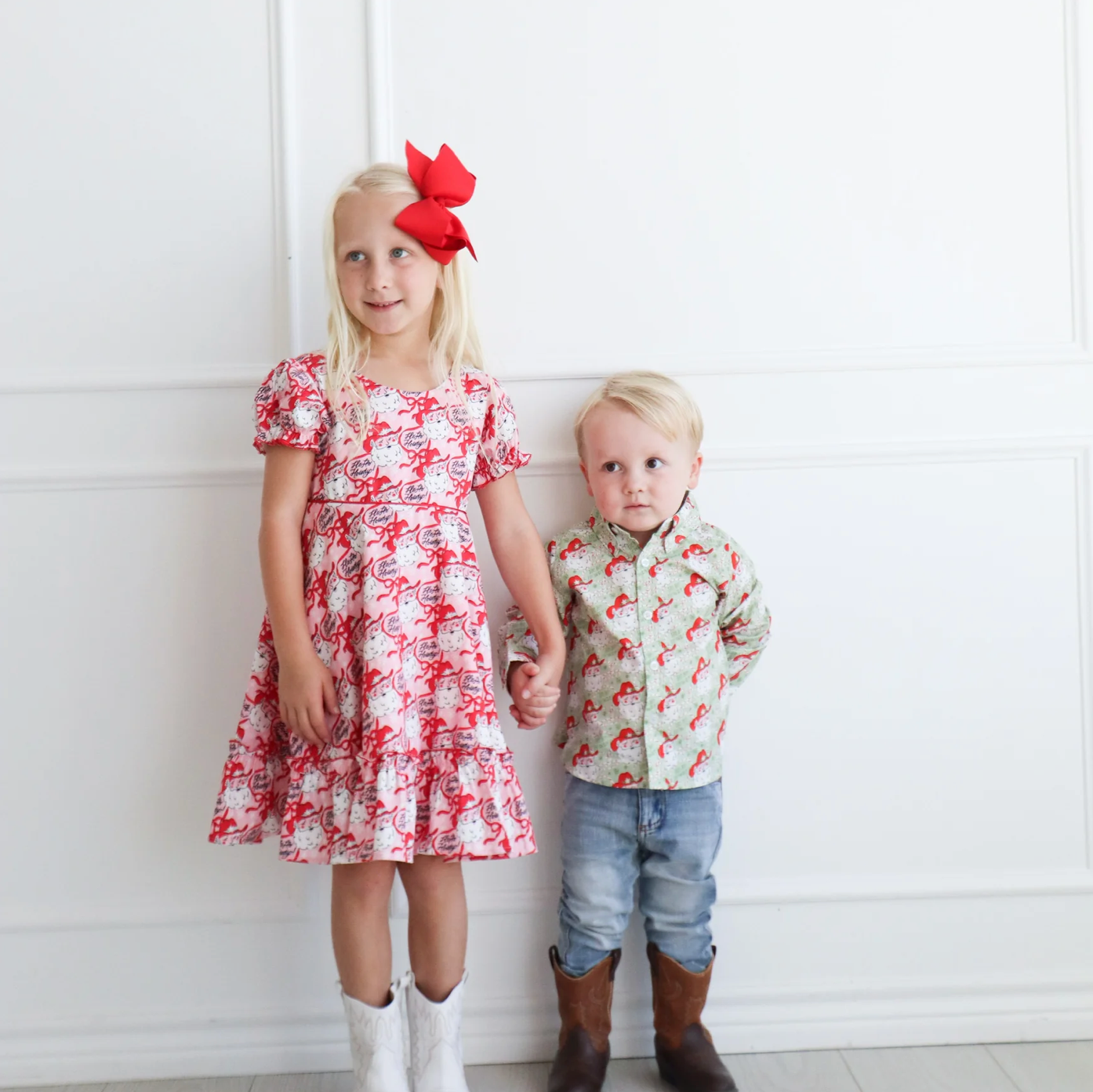 Get ready to twirl into the merriest hoedown of the season with the Ho Ho Howdy Santa Dress! Perfect for the sweetest little cowgirl in your life, this festive frock features jolly Santas spreading cheer straight from the North Pole to the Wild West. A holiday look that’s made for rootin’, tootin’, and twirlin’ by the tree!