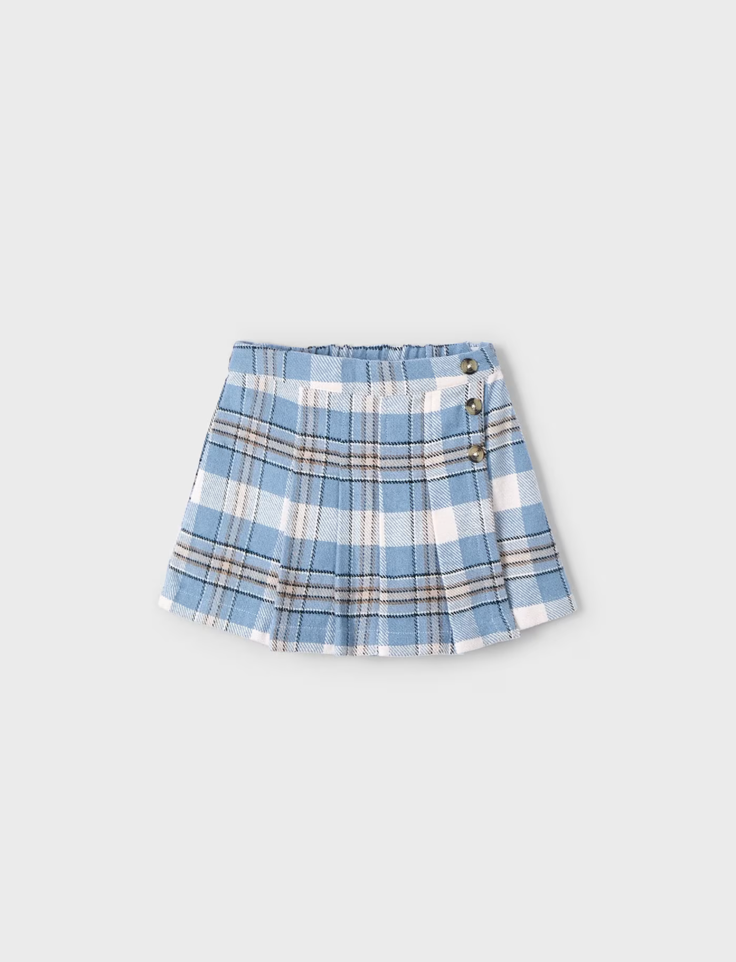 This stylish skort for girls combines comfort and functionality, featuring an adjustable elastic waistband with interior buttons for a secure fit. Decorated with decorative buttons and a classic plaid pattern, it’s perfect for adding a playful touch to any outfit while ensuring ease of movement for everyday activities.