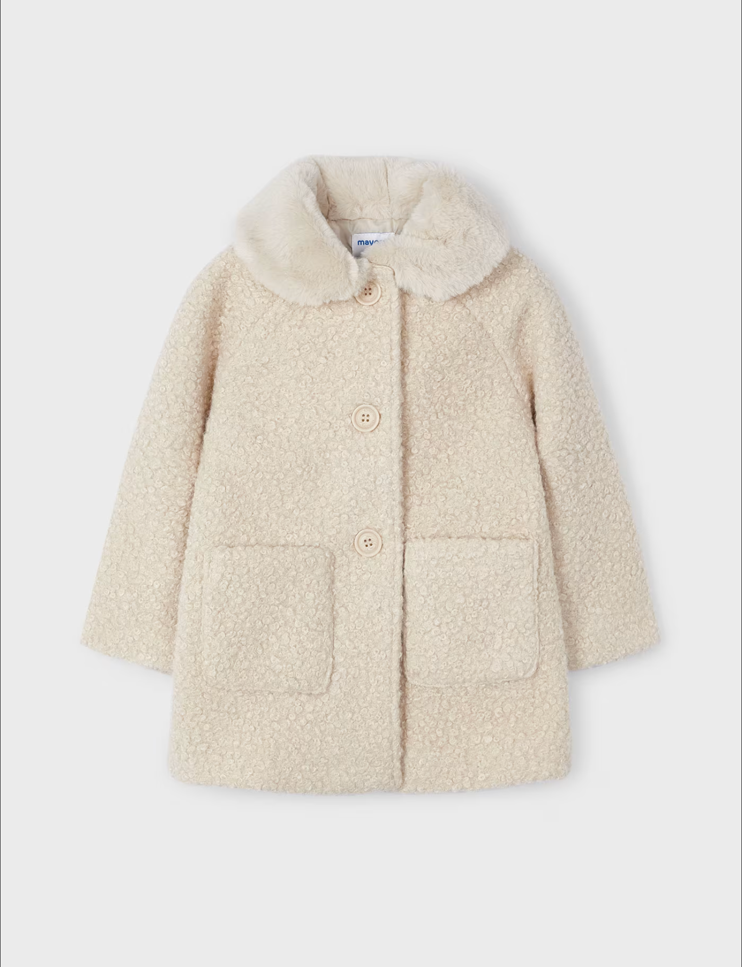 Mayoral Girls Teddy Coat with Faux Fur Collar