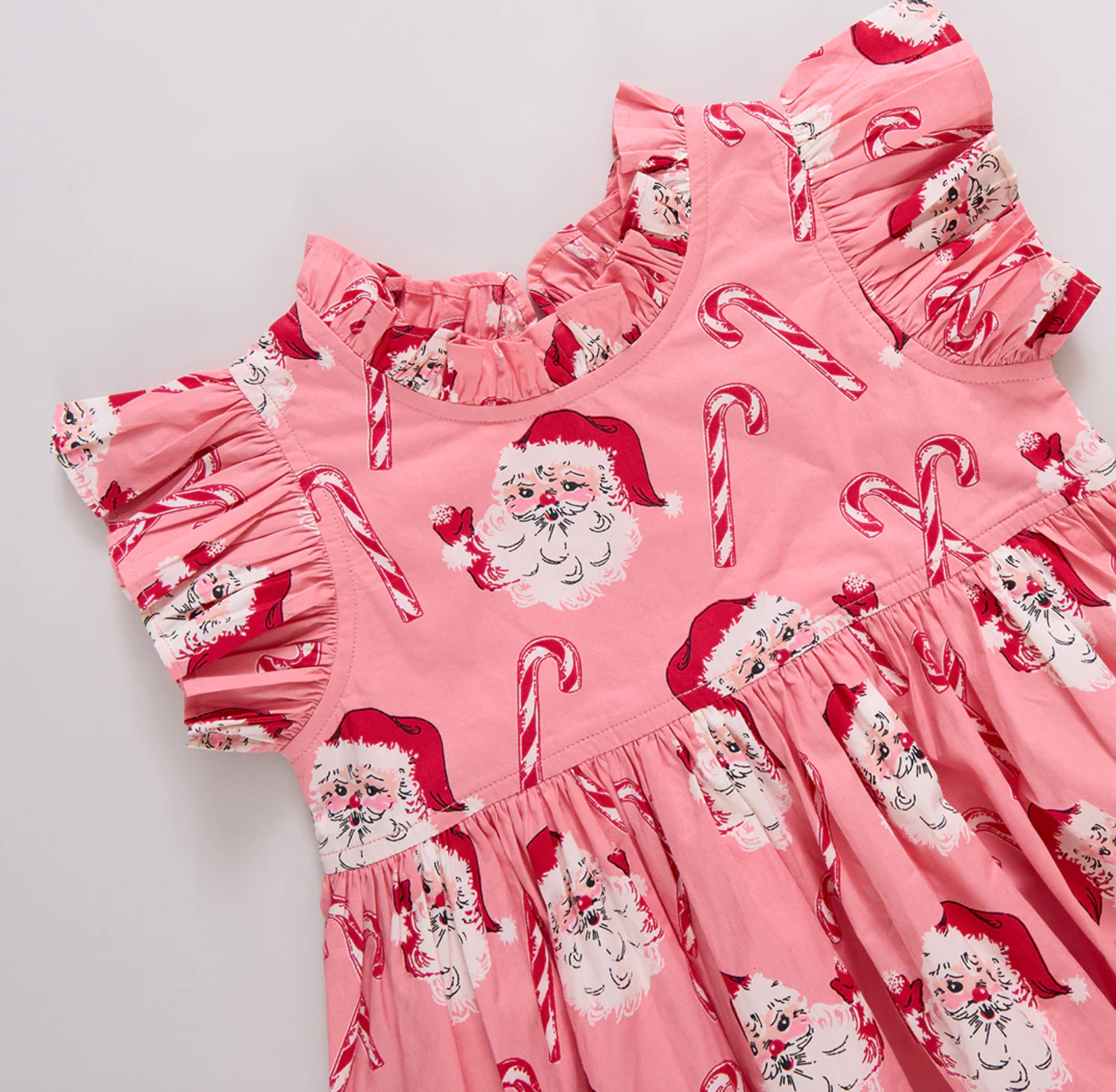 Pink Chicken Baby Girls Jennifer Dress Set - Pink Candy Cane Santa