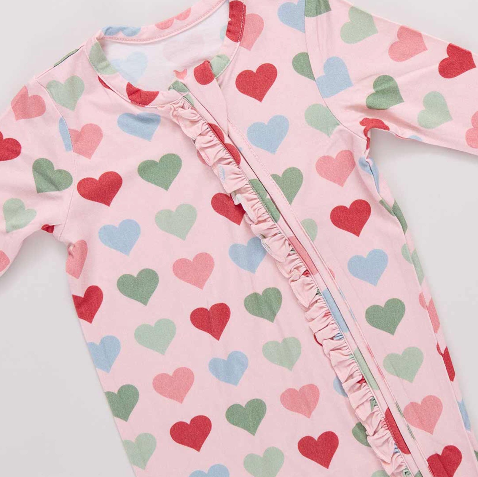 Pink Chicken Baby Girls Ruffle Bamboo Romper - Pink Small Hearts