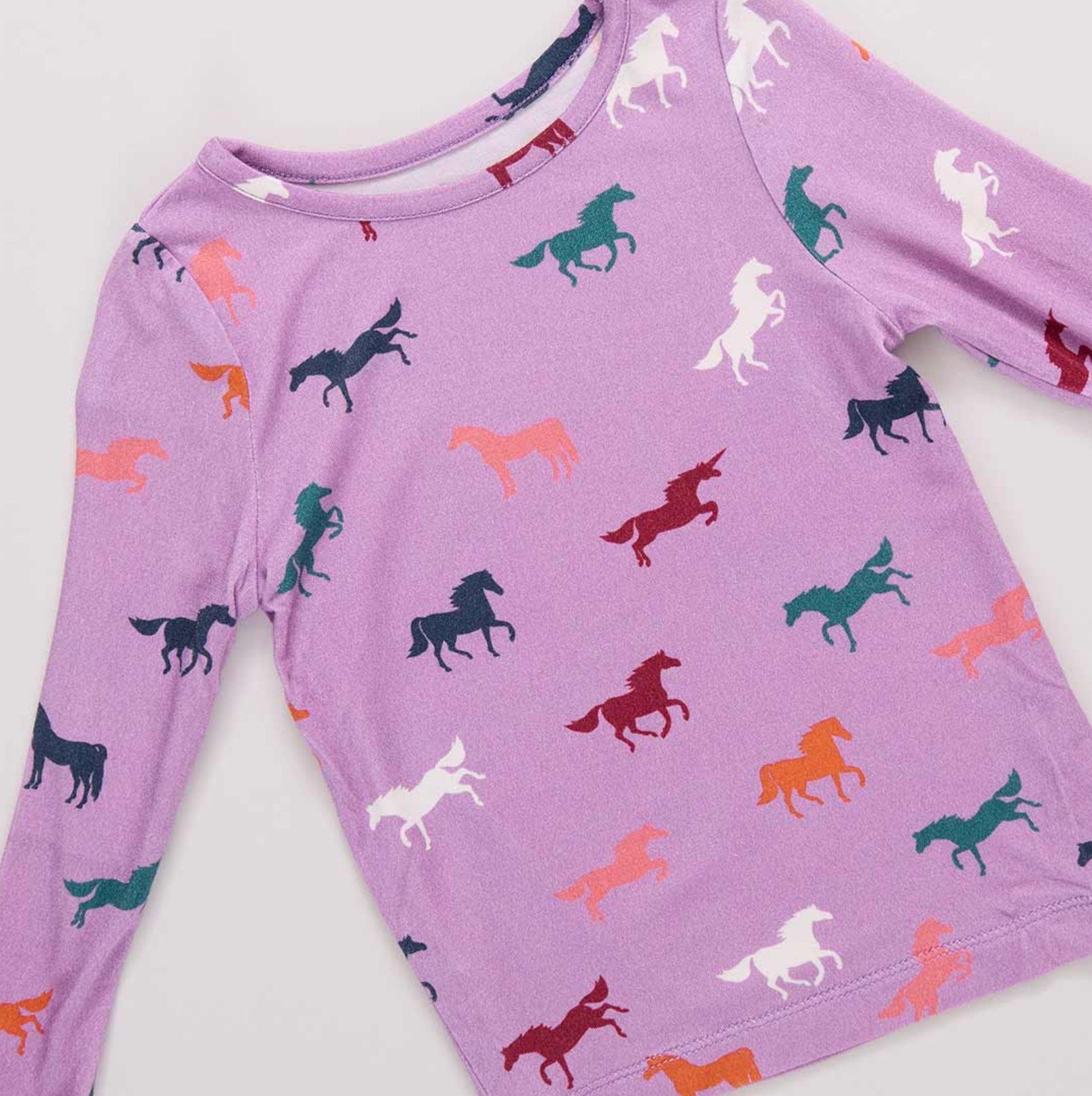 Pink Chicken Kids Bamboo PJ Set - Lavender Multi Horses