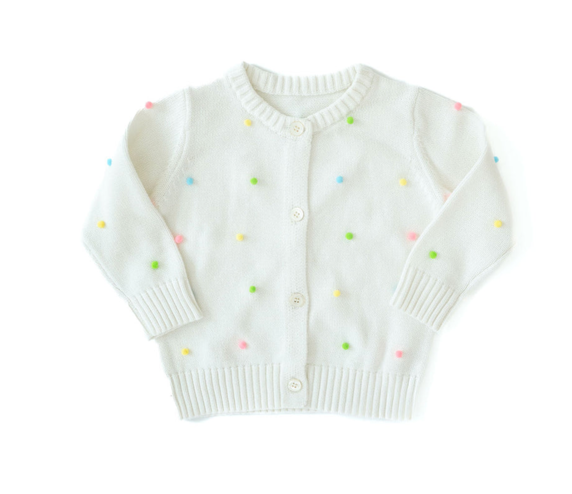 Our pastel Pom Pom Cardigan is a classic style that is sure to elevate your daughter's wardrobe. It is cozy soft and timeless style that will carry you through Fall, Winter and Spring.