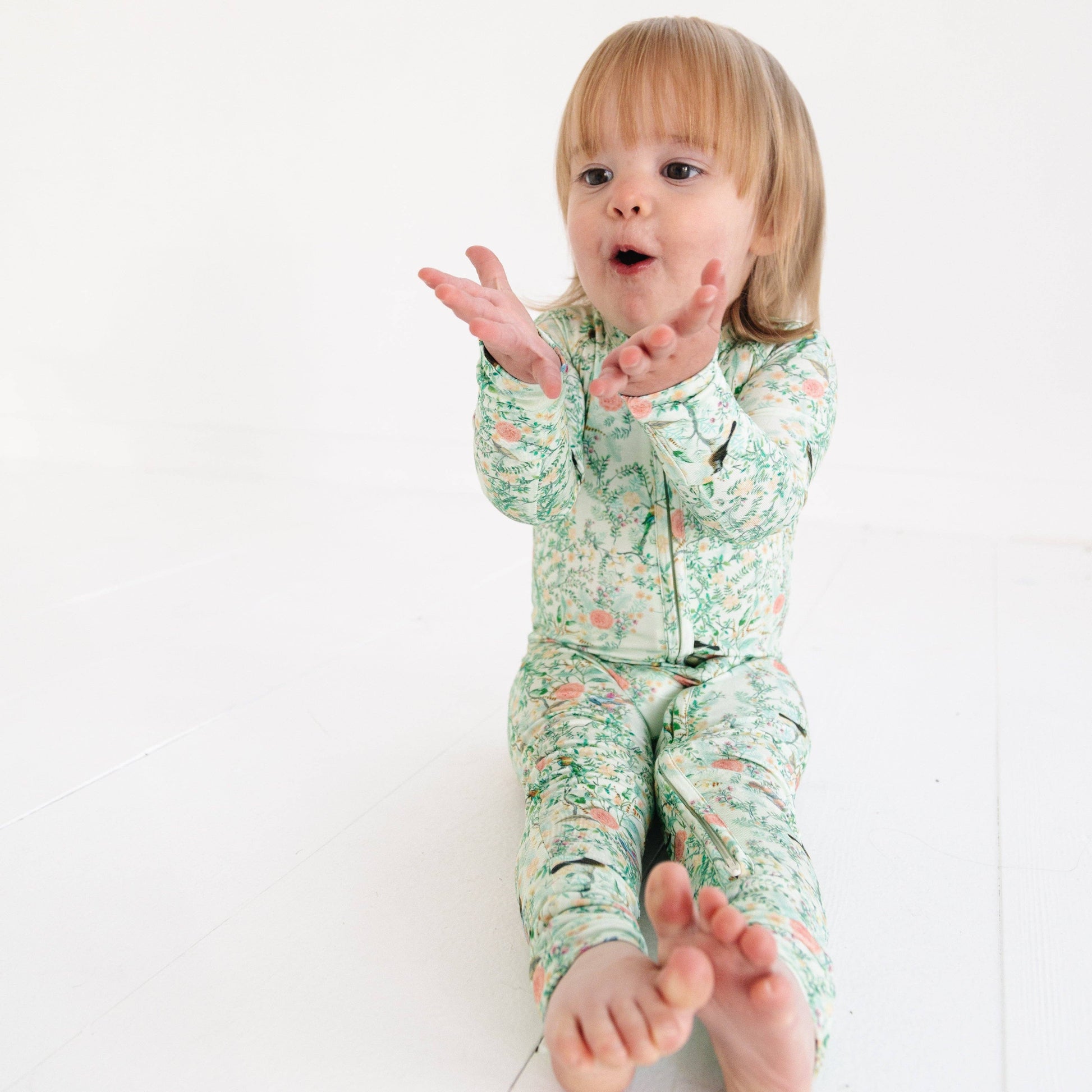 The girls sleeper is crafted from our signature buttery-soft bamboo fabric. Perfect for sensitive skin, the seasonless, tag free fabric ensures year-round comfort. Thoughtful touches like fold-over mittens (up to size 3-6 months) and foot cuffs keep little ones cozy and scratch-free, while the double zipper makes diaper changes effortlessly easy.