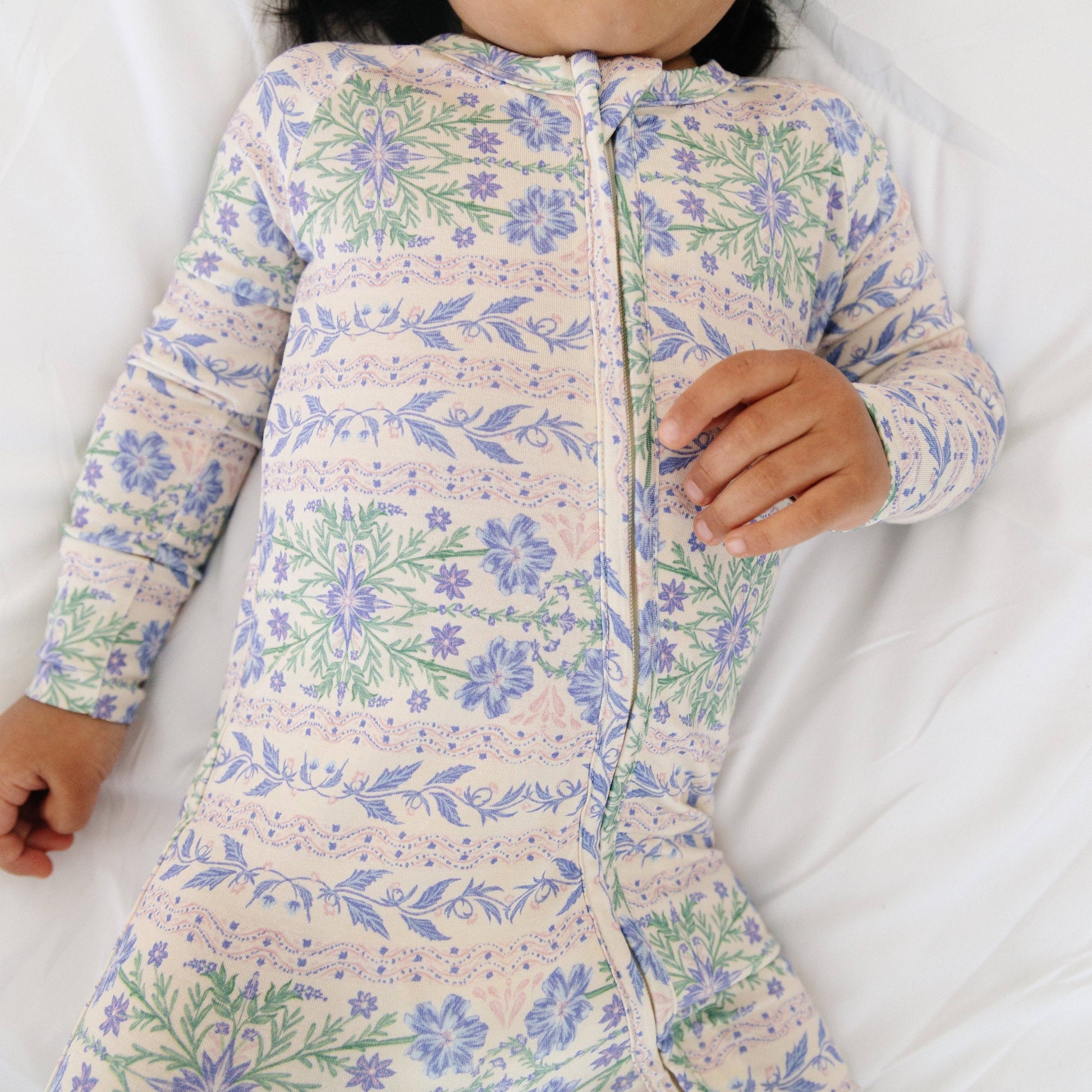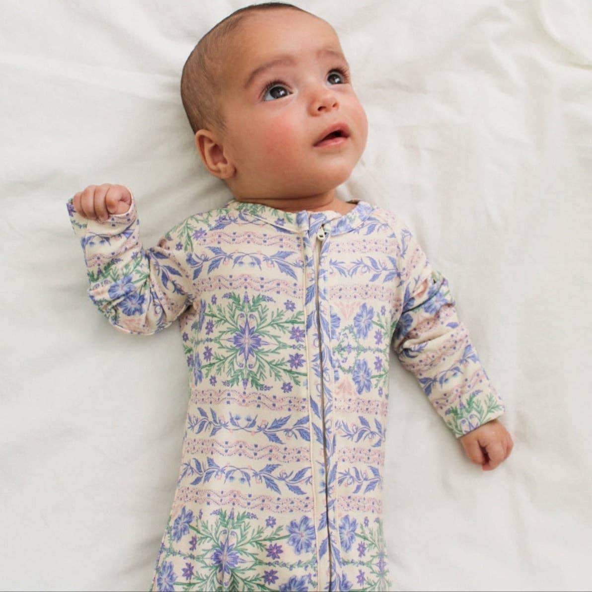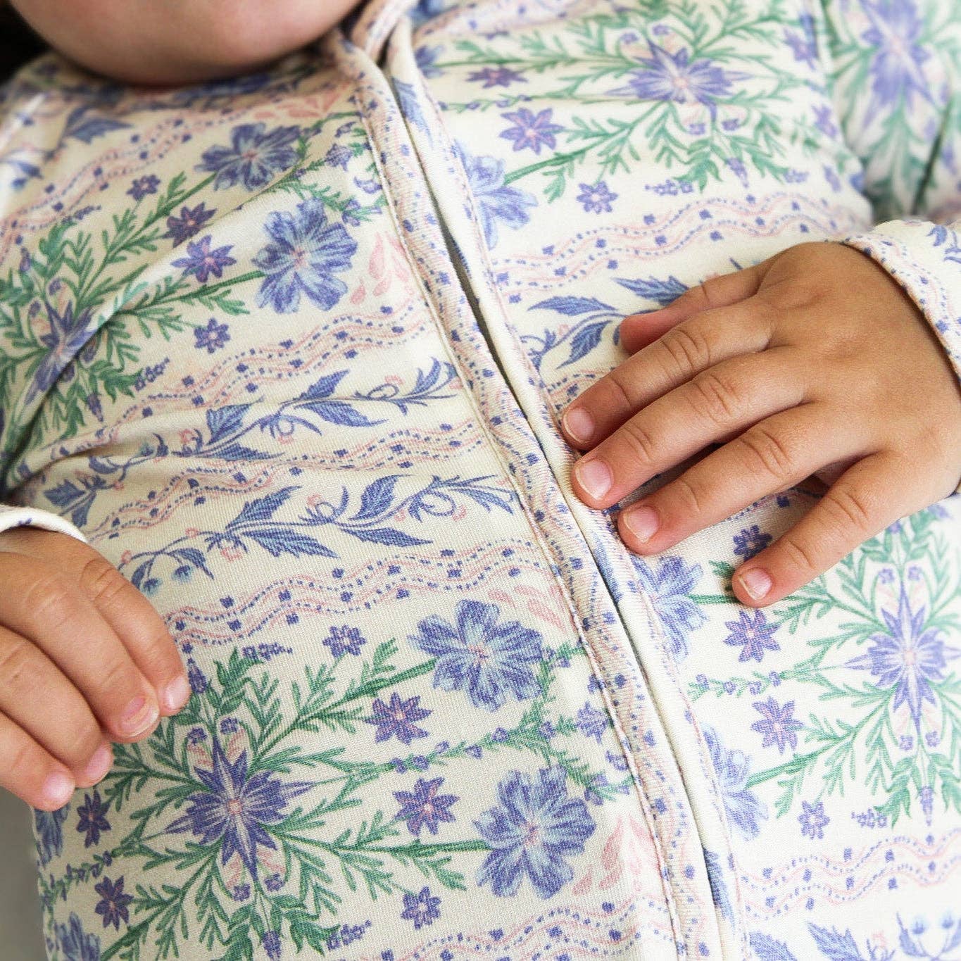 The girls sleeper is crafted from signature buttery-soft bamboo fabric. Perfect for sensitive skin, the seasonless, tag free fabric ensures year-round comfort. Thoughtful touches like fold-over mittens (up to size 3-6 months) and foot cuffs keep little ones cozy and scratch-free, while the double zipper makes diaper changes effortlessly easy.